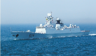 4月26日,中国海军“舟山”号导弹护卫舰接受检阅。 新华社记者 查春明 摄