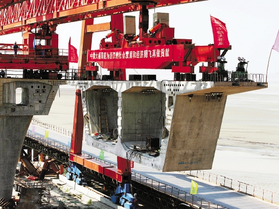 建设中的嘉绍大桥。 记者 邵全海 摄