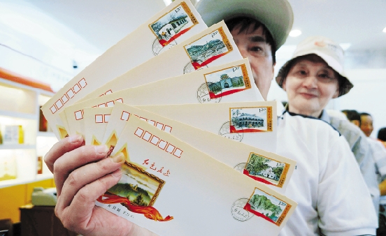 6月30日,《红色足迹》特种邮票在杭州发行。邮票分别展现井冈山、瑞金、遵义、会宁、延安和西柏坡等红色革命根据地的旧貌新颜。 龙巍 摄