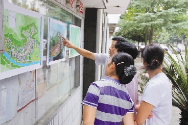 枫树岭镇的村民在镇旅游发展规划图前驻足。朱胜凯 摄