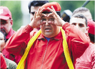 7月1日,在委内瑞拉的玛丽亚岭,现任总统查韦斯参加竞选活动。 新华社发