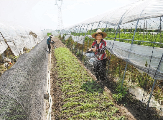 7月4日,东阳市吴宁街道的菜农积极应对高温天气给蔬菜生产带来的不利影响,采取黑色塑料遮阳网防晒、加强田间管理等一系列措施,确保市民“菜篮子”的供给。