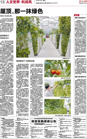 烈日下,楼顶大棚的温度约摸有40摄氏度。棚子刚一掀开,满眼的绿色一下子让人神清气爽,耳边隐约传来的轻音乐又让人有些陶醉。