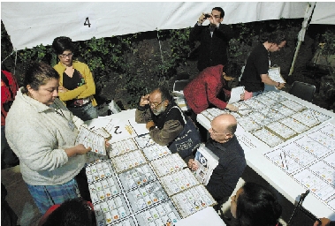 7月4日,在墨西哥首都墨西哥城,工作人员统计选票。 墨西哥联邦选举委员会官员当日表示,将重新统计超过半数的总统选举和议会选举的选票,计票过程将在墨西哥各政党代表的监督下进行。据悉,有78012个投票箱需开箱重新计票,约占总数的54.5%。根据墨西哥选举法,只有出现一处投票点两名候选人得票率相差不到1%等情况时才需重新计票。 新华社发 |