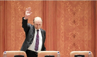 7月6日,在罗马尼亚布加勒斯特,罗总统伯塞斯库在议会特别联席会议投票前离开。罗马尼亚议会参众两院联席会议当晚以256票赞成通过了对总统伯塞斯库的弹劾议案,大大超过该议案获得通过所需半数以上的217票法定票数。 新华社发