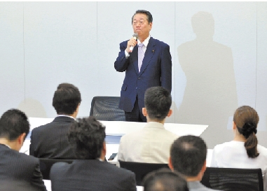 7月4日,小泽一郎在日本东京召开的建党筹备会议上讲话。