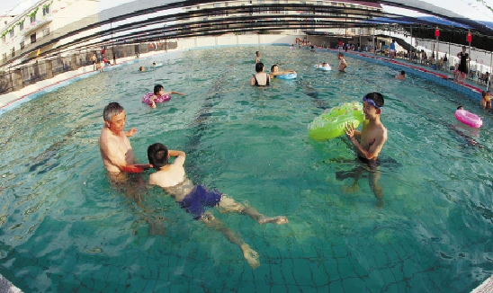 炎炎夏日,何处消暑?龙游县湖镇镇新光村投资300多万元,建起总面积3900多平方米的游泳场,吸引附近村民来“畅游”,水很干净,还有救生员,很安全。 通讯员 鲍卫东 记者 毛广绘 摄
