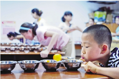 宁波市青少年暑假乐园活动近日在宁波市青少年宫开幕,约8000名青少年参加了“格子跳房”、“小猫钓鱼”、“玩转魔方”等游戏,图为小朋友正在玩“吹灰之力”游戏。 记者 吴晓鹏 通讯员 俞志定 摄