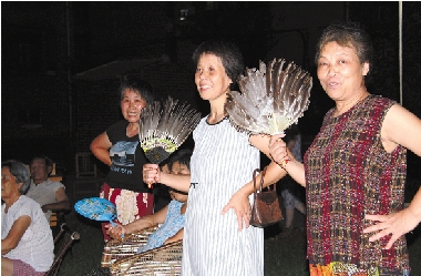 昨晚,洞桥社区居民在观看露天电影。金敖生 摄