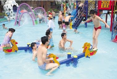 7月9日,游客在杭州乐园水公园嬉水,享受清水带来的片刻凉意。据省气象台消息,新的一周,全省范围内仍以晴热天气为主,气温依然居高不下。