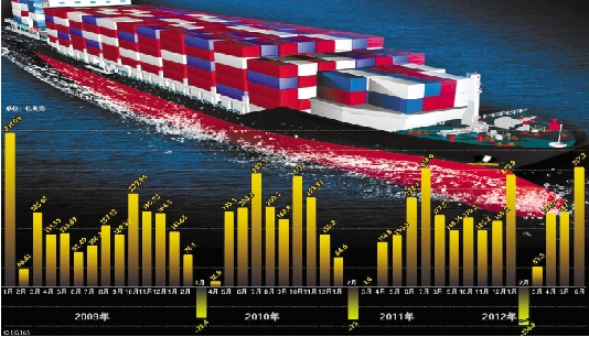 2009年至2012年,中国外贸形势逐月变化图。 视野网供图