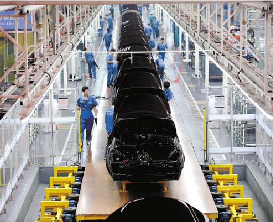 吉利汽车浙江杭州湾基地,帝豪轿车正在生产中。这个基地每三分钟就有一辆汽车下线,销往全国各地。据了解,目前“吉利”已在宁波形成了北仑、杭州湾新区两大战略基地。 本报记者 梁臻 摄