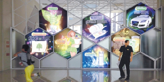 7月11日,中国杭州低碳科技馆试运行开放。该馆为全球第一家以低碳为主题的大型科技馆,集低碳科技普及、绿色建筑展示等功能于一体。 朱引炜 梁臻 摄