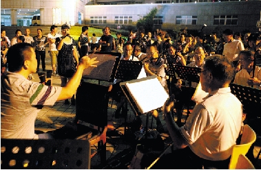 7月12日晚,台州路桥区金清镇人民广场上农民自发形成的“越剧角”、“空竹角”等8个点正在热热闹闹开展活动。 王依友 摄