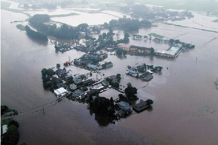 7月12日,日本九州熊本县阿苏山市的一处居民区浸泡在暴雨引发的洪水中。日本九州11日开始的强降雨天气仍在持续,12日深夜至13日凌晨九州局部地区又降暴雨。截至发稿时,连日暴雨造成的死亡人数已增至18人,另有8人失踪。 据日本气象厅预报,从13日早上到中午,以九州南部为中心的地区将再降暴雨,局部地区一小时降雨量有可能达70毫米。 新华社发 |