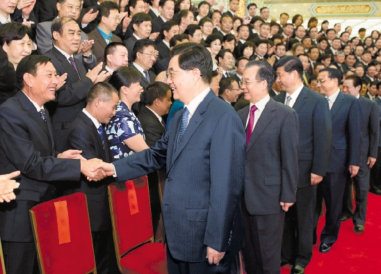 7月13日,胡锦涛、温家宝、习近平、李克强、周永康等亲切会见与会代表。 新华社记者 黄敬文 摄