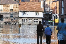 7月7日,在英格兰北部的约克,人们望着超出正常水位的乌斯河。 新华社发