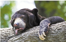 7月6日,一只马来熊在美国内布拉斯加州奥马哈市杜尔利动物园里无精打采地趴着,当日这里的气温达到39.5摄氏度。 新华社发