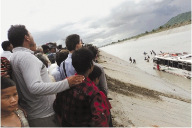 尼泊尔客车失控坠水渠