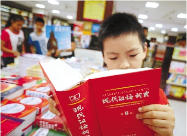 7月15日,杭州小读者在一家书店里阅读第6版《现代汉语词典》。新版《现代汉语词典》日前由商务印书馆出版,增收了“微博”、“云计算”、“宅”、“PM2.5”等3000多条新词语。 龙巍 摄