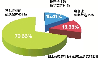省工商局发布各行业霸王条款的比例