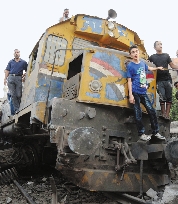7月17日,人们聚集在开罗市郊的列车出轨事故现场。埃及一列旅客列车17日在开罗南部的巴德拉欣发生出轨事故并起火,造成至少14人受伤。