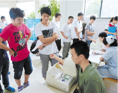 7月20日,2012年度浙江省军事院校、国防生院校招生体检工作在海军疗养院展开。今年共有46所军校、国防生院校在我省招生608人,其中军队院校有国防科学技术大学、陆军军官学院、武警警官学院等18所,招收国防生的普通高校有北京大学、复旦大学、浙江大学等28所。 本报记者 董旭明 通讯员 夏烨 葛雯 摄 |