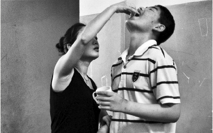 这位男孩生病了,情绪很糟糕。晓丽像妈妈一样,耐心说服他呑下药丸。