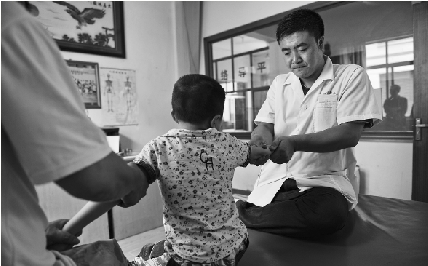 丈夫马飞每天要给10多个孩子做按摩理疗,对那些僵硬身躯进行“揉捏挤压”,以“唤醒”孩子们的身体。