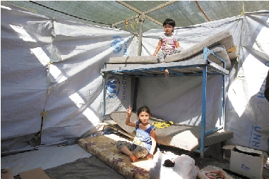 在约旦临近叙利亚边界的赖姆萨市一处难民营,因躲避战火来到此地的叙利亚儿童。 新华社发
