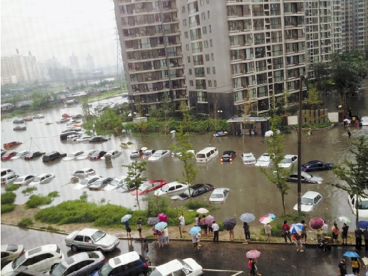2012年7月21日,北京遭遇强降雨,立水桥南,路边小区的车辆被淹。 视野网供图