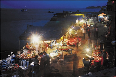 连日来,舟山群岛最东端的东极岛上夜排档生意兴隆。七八月是东极岛的旅游旺季,每天迎来大批游客。 姚峰 摄