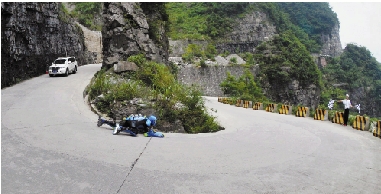 7月22日,法国轮滑大师让伊夫·布朗杜滑行在张家界天门山盘山公路上。 当日,有着“法国轮滑变形金刚”之称的法国轮滑大师让伊夫·布朗杜在没有采取任何防护措施,仅穿着自己特制的轮滑服的情况下,成功挑战有着“天下第一公路奇观”、“中国极限道路之王”美誉的天门山盘山公路。 据介绍,法国人让伊夫·布朗杜是目前世界公认的技术最强、最具胆量的轮滑大师,他经常在世界各地的高危山地公路上进行高速轮滑,他创造的时速超过110公里的轮滑速度记录,一直没有人能够超越。 除了身怀轮滑绝技,让伊夫·布朗杜亲手设计制造了一身特别的轮滑盔甲,除了脚底的轮滑鞋外,这身轮滑盔甲在前胸、后背、胳膊肘和膝盖都安有滑轮,身着轮滑盔甲的让伊夫·布朗杜就像变形金刚一样,可以用全身多个部位和各个关节着地进行高速轮滑。让伊夫·布朗杜此次挑战的天门山盘山公路,全长11公里,有99道急弯,险绝无比。 (据新华社) |