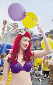 7月22日,在加拿大多伦多的邓达斯广场,一名装扮成美人鱼的志愿者为到场的人们送上气球。当日,加拿大多伦多第八届“青年日”庆祝活动在邓达斯广场进行,数百名年轻人通过舞蹈、演唱、绘画、时装设计等,展示当地青少年在学习、工作之外丰富多彩的生活。