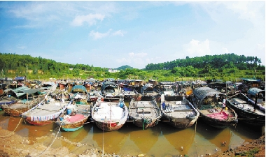 7月23日,渔船停靠在广西钦州犀牛角渔港避风。 新华社记者 张爱林 摄