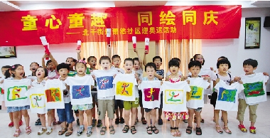 7月23日,萧山区萧然社区举办“童心童趣、同绘同庆”迎奥运活动,小朋友们用笔描绘他们心中的奥运。 张祥荣 摄