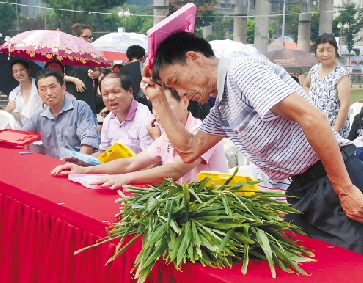 陈继荣在估有多少片姜叶。 杨懿泓 摄
