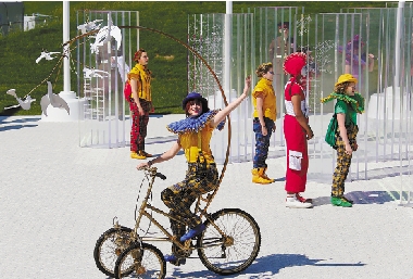 7月23日的伦敦奥运村升旗广场,演员在表演。 新华社发