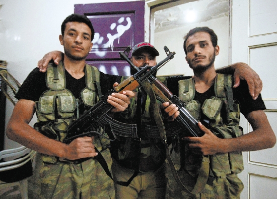 当地时间2012年7月24日,叙利亚阿勒颇,叙利亚反对派武装人员。 视野网供图