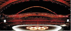 | 经历108年的荣耀和磨难,现代奥林匹克运动荣归故里。体育场地中央灌装了2000多吨水,成为水色交错的“人造爱琴海”。一道彗星般的火束穿越夜空,射入“海面”燃烧出奥运五环标志,完美地体现了“文化奥运”的口号。 (通讯员 嵇敏 整理) |