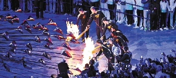 七位青年点燃火炬 视野网供稿