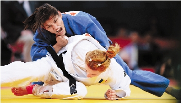 7月28日,在柔道女子48公斤级比赛中,巴西选手萨拉·梅内塞斯(后)击败罗马尼亚选手阿林娜·杜米特鲁,夺得金牌。 新华社发