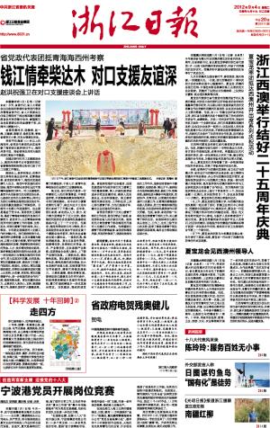 新闻背景:海西州位于青藏高原北部、青海省西部,境域主体为我国四大盆地之一的柴达木盆地,总面积30.1万平方公里,是青海省区域面积最大的民族自治州。海西州人口64万,有蒙古、藏、汉、回、撒拉等多个民族。柴达木盆地是著名的“聚宝盆”,矿产资源十分丰富。2010年,按照中央要求,浙江对口支援海西州。为此,浙江省委、省政府派遣24名干部赴海西州,建立省对口支援青海海西州指挥部,启动对口支援海西专项规划编制工作,及时下达援青项目计划,全力推动产业经贸合作,积极开展智力援助和宣传工作,援青各项工作有序推进、初见成效。两年来,浙江省先后安排援建资金1.62亿元,其中省级财政资金1.31亿元,援青干部募集各类资金3110万元。浙江产业援青的重要平台——柴达木浙江工业园建设进展顺利,目前已与浙江企业签约13个项目,签约资金达49亿元;正在实施的招商引资项目9个,投资额23.3亿元,已完成投资7.75亿元。另外,两地共有176批2247人次的干部人才进行了互访交流、培训学习和工作考察。