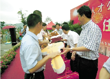 | “真没想到我能入住每平方米每月只需要6元的公寓房子!”连日来,来自河南郑州的温州锦峰纺织机械有限公司副总工程师冯喜奎十分喜悦。因为他作为温州市瓯海区35名高级人才之一领到了“聚贤楼”人才公寓的钥匙。 黄松光 吴海栋 严建春 摄 |