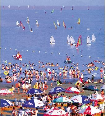 象山松兰山海滨游人如织