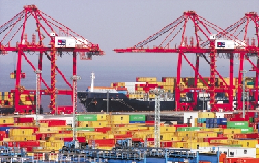繁忙的宁波港集装箱码头