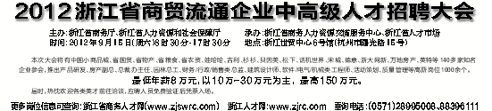 主办:浙江省商务厅、浙江省人力资源和社会保障厅 承办:浙江省商务人力资源交流服务中心、浙江省人才市场