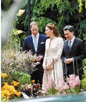 9月11日,英国威廉王子和凯特王妃在新加坡国家胡姬花园参观胡姬花。