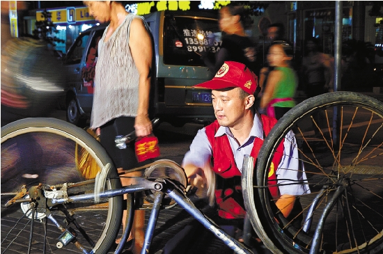 周六晚上,孔胜东就会到杭州中山北路和百井坊巷路口摆摊义务修车,已坚持26年。
