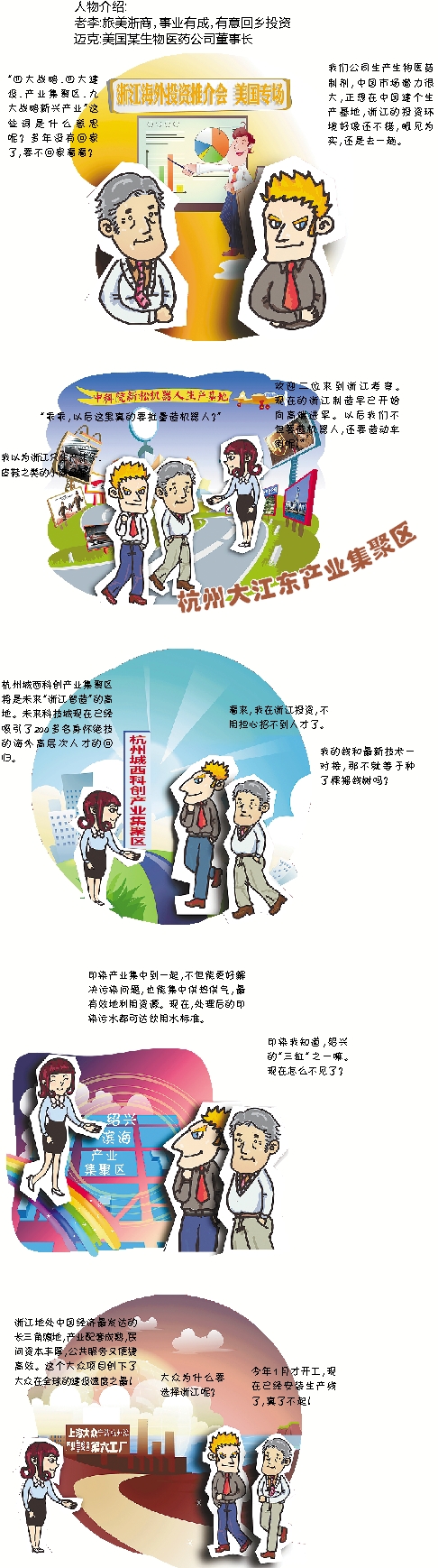 我们公司生产生物医药制剂,中国市场潜力很大,正想在中国建个生产基地,浙江的投资环境好像还不错,眼见为实,还是去一趟。